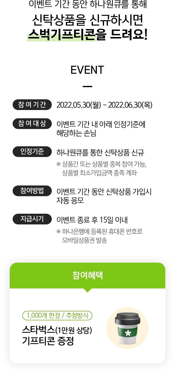 - 본 이벤트는 하나원큐를 통한 신탁상품 신규에 한해 진행됩니다.