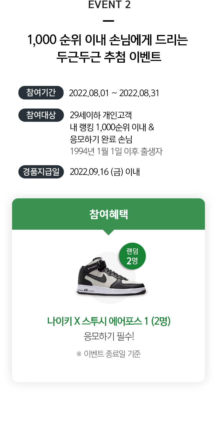 1,000 순위 이내 손님에게 드리는 두근두근 추첨 이벤트