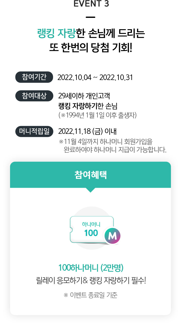 EVENT3는 하나원큐에서만 응모 가능합니다.