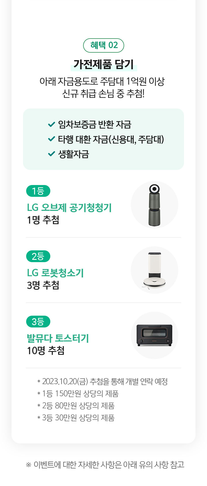 아래 자금용도로 주담대 1억원 이상 신규 취급 손님 중 추첨!