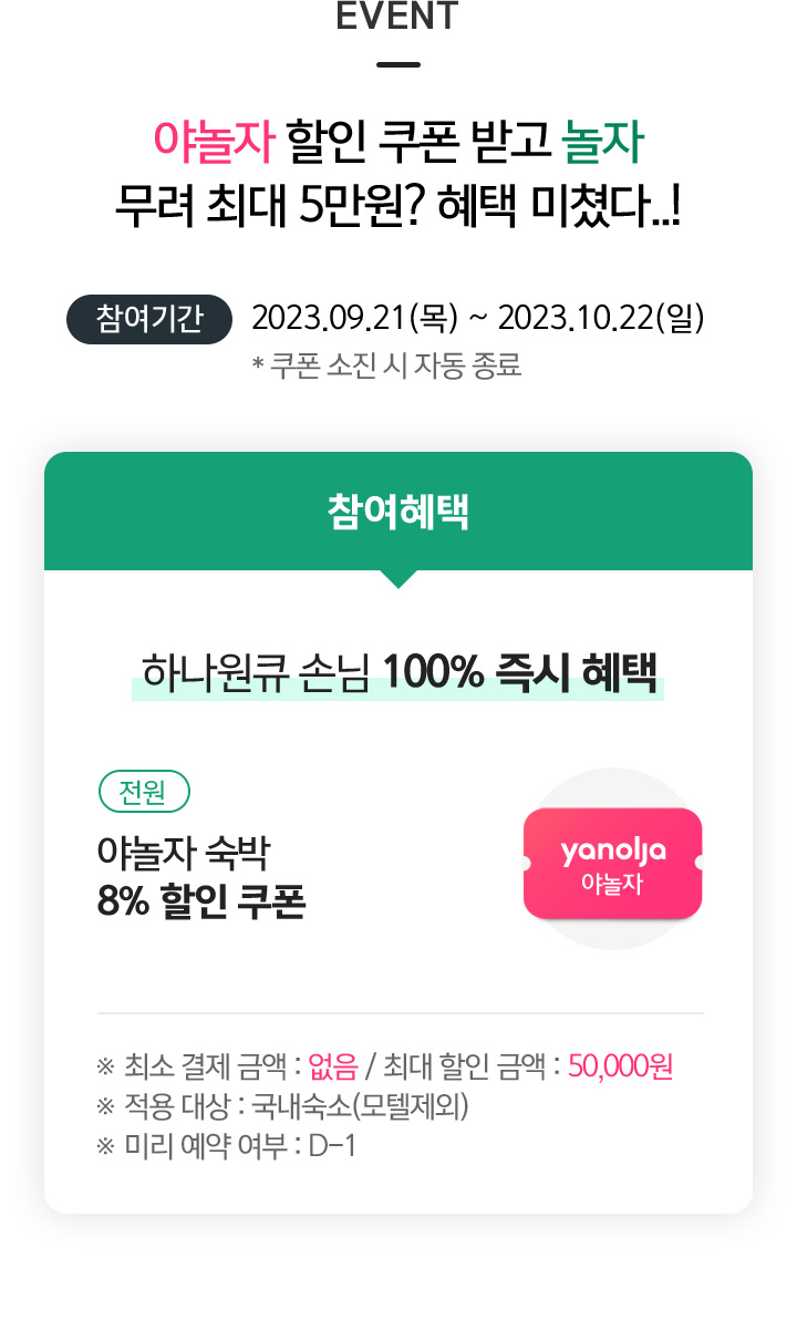 * 최대 5회, 5만 야놀자코인 페이백