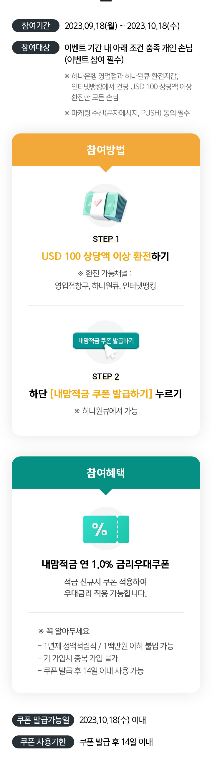 ※ 환전 가능채널: 영업점창구, 하나원큐, 인터넷뱅킹하단 [내맘적금 쿠폰 발급하기] 누르기