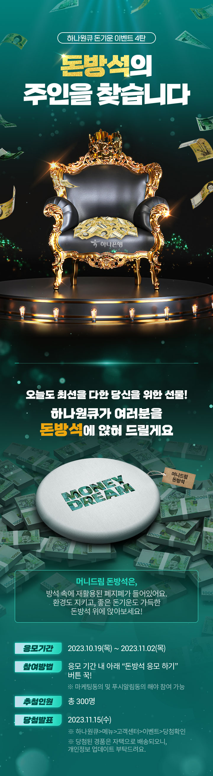 하나원큐가 여러분을 돈방석에 앉혀 드릴게요