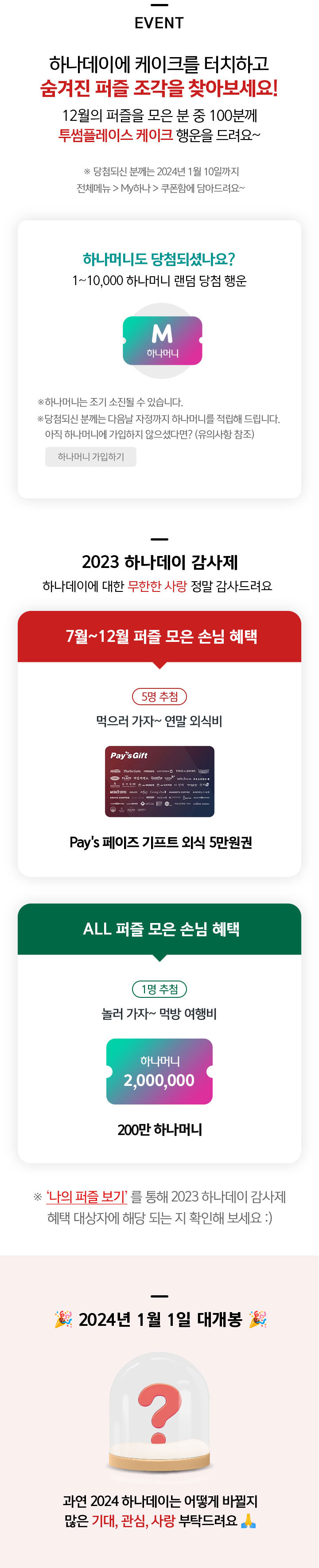 ※당첨되신 분께는 2024년 1월 10일까지 전체메뉴 > My 하나 > 쿠폰함에 담아드려요~