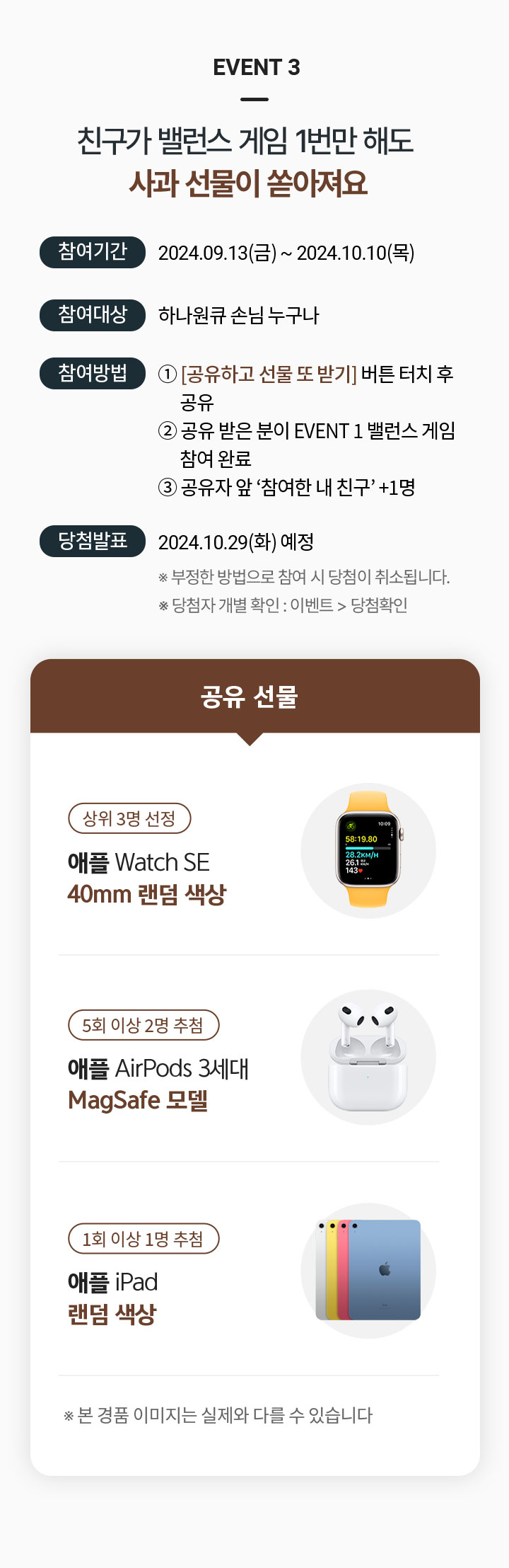 ※ 본 경품 이미지는 실제와 다를 수 있습니다