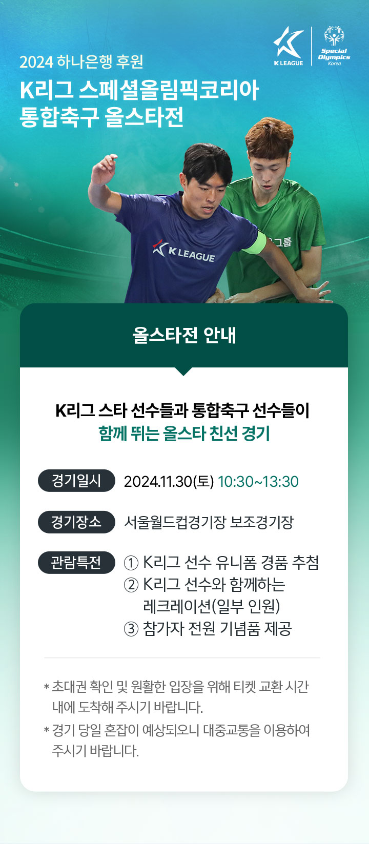 K리그 스타 선수들과 통합축구 선수들이 함께 뛰는 올스타 친선 경기