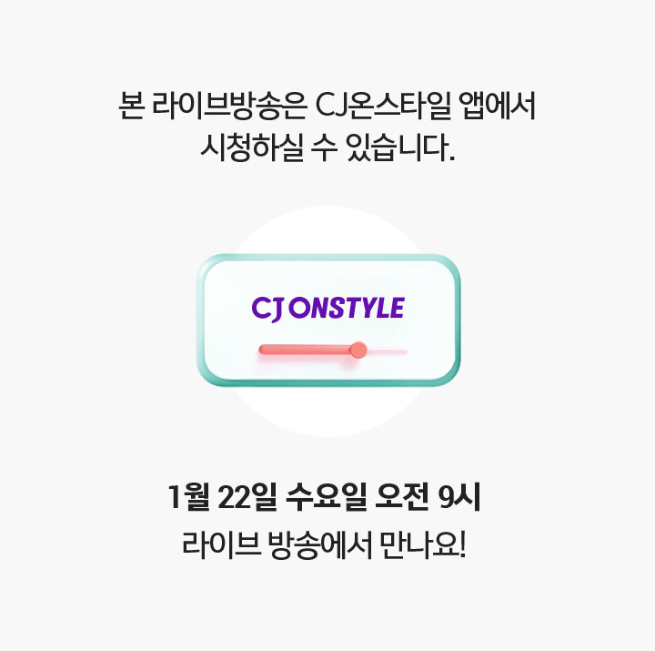 본 라이브방송은 CJ온스타일 앱에서 시청하실 수 있습니다.1월 22일 수요일 오전 9시 라이브 방송에서 만나요!