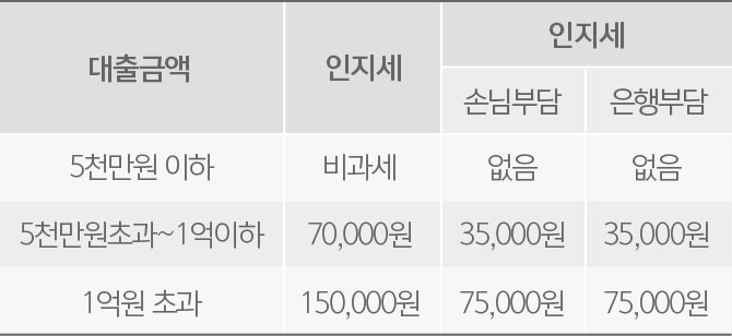 | 대출금액 | 인지세 | 인지세 | |