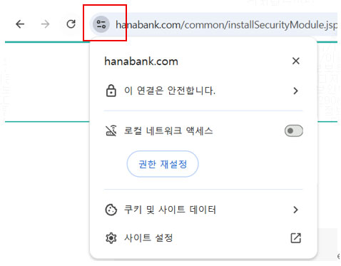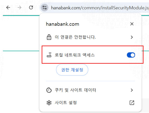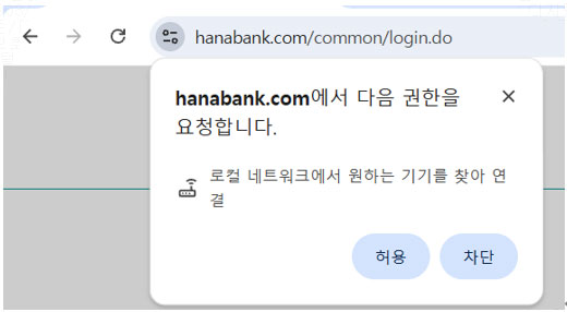 크롬 141버전부터 로컬 네트워크 액세스 정책을 “허용”해주셔야 인터넷 뱅킹 이용이 가능합니다. 크롬 141버전에서 보안 강화를 위해 사용자가 로컬 네트워크에 요청을 보낼 때 권한 팝업 메시지가 표시됩니다. 이는 로컬 네트워크 장치에 대한 무단 접근을 방지하여 사용자를 보호하기 위한 크롬의 보안 정책입니다.